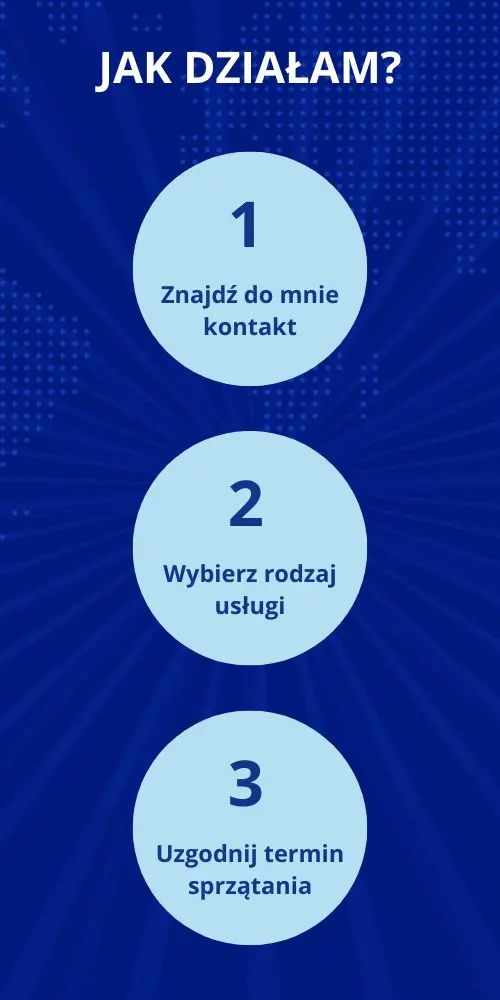 Moją misją jest tworzenie czystych, bezpiecznych i komfortowych przestrzeni – takich, w których chce się pracować, mieszkać i odpoczywać. Pracuję dokładnie, terminowo i z pełnym zaangażowaniem, wykorzystując profesjonalny sprzęt oraz certyfikowane środki czystości, również ekologiczne.
